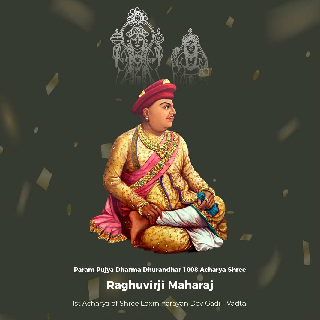 After 37 years as Acharya, Shree Raghuvirji Maharaj went to Akshardham and appointed his nephew, H.H. 1008 Acharya Shree Bhagwatprasadji Maharaj, as the 2nd Acharya of the Vadtal Gadi. Under the leadership of Shree Raghuvirji Maharaj, the Sampraday flourished in ways that can still be seen today.