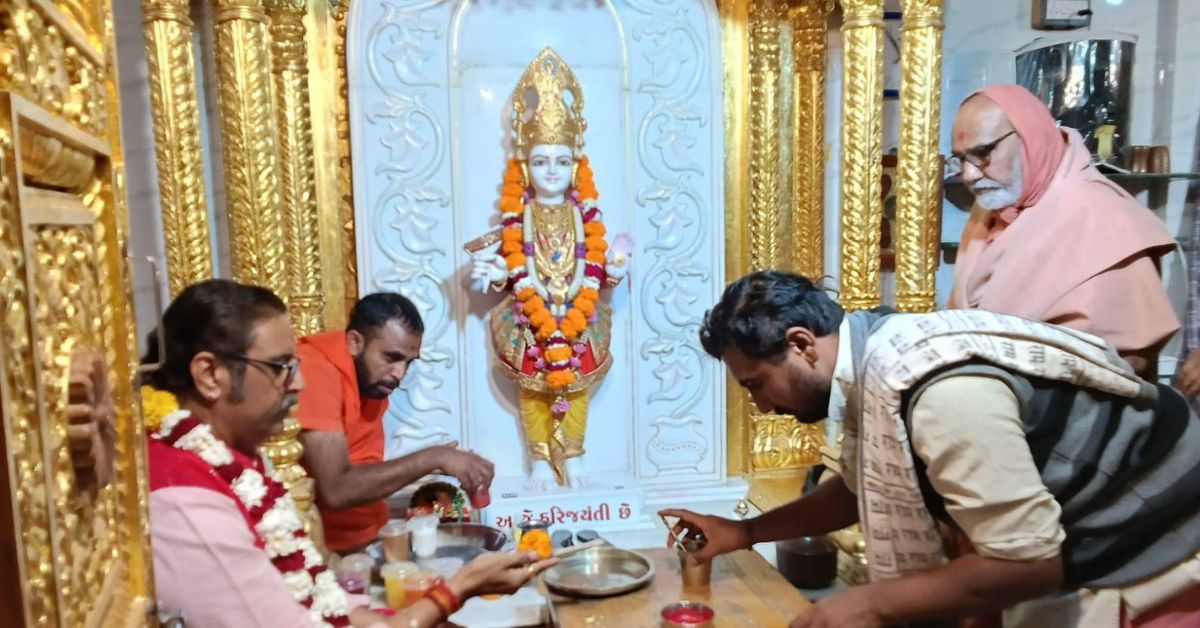 On Tuesday January 27th, H.H. 108 Bhavi Acharya Shree Nrigendraprasadji Maharaj graced the prasadi village of Varjang Jaliya (near Upleta) for the Swaminarayan Mandir’s 4th Patotsav. This village was graced by Bhagwan Shree Swaminarayan many times, hence a grand mandir was built in 2022 under the guidance of Swami Shree Bhaktiswarupdasji and the late Purani Swami Shree Hariswarupdasji. The festivities concluded with a satsang sabha, where Lalji Maharajshree encouraged haribhakto to continue coming to mandir daily, doing darshan, and doing seva.